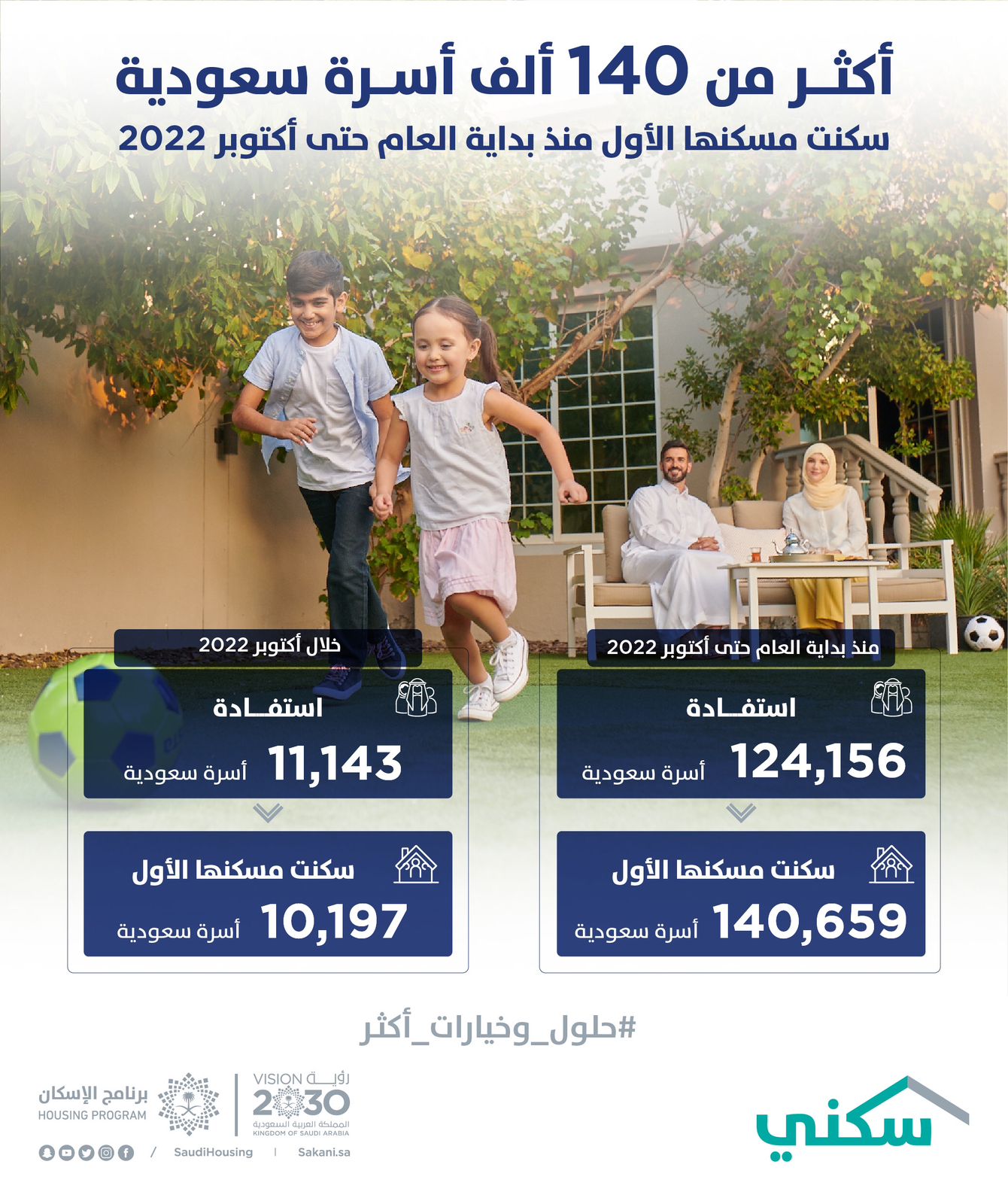 أخبار محلية > “سكني”: أكثر من 140 ألف أسرة سعودية سكنت مسكنها الأول منذ بداية العام حتى نهاية أكتوبر 2022
