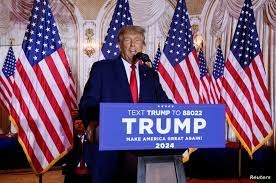 أعلن الرئيس الأمريكي السابق دونالد ترامب ترشحه للانتخابات الرئاسية الأمريكية في عام 2024، موضحا أن عودة أمريكا تبدأ الآن.