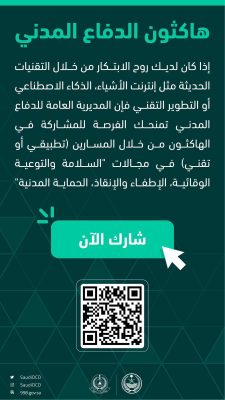 أخبار محلية > الدفاع المدني يدعو المهتمين إلى التسجيل في “هاكثون الدفاع المدني”