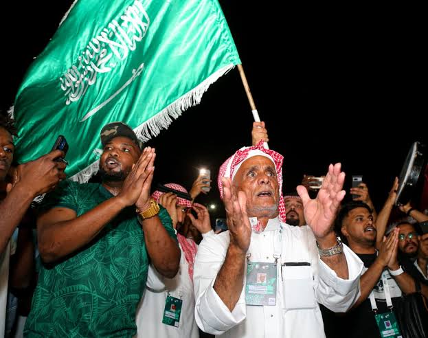 ويشارك الجماهير في مسيرة احتفائية بالمنتخب السعودي؛ منها مسيرات لدخول الملعب، كما يشاركون بالأهازيج والتشجيع، وخصص لهم الاتحاد السعودي لكرة القدم منطقة تفاعلية؛ هي (البيت السعودي)، المتواجد على كورنيش الدوحة بمنطقة ( الدفنة بارك ) على مساحة 18 ألف متر، ويشتمل على عشرة أجنحة تقام فيها 21 فعالية، تهدف إلى إثراء تجربة المشجعين في المونديال، والتعريف بالثقافة السعودية، ويتضمن تجارب تفاعلية ومتاحف رقمية ومتجراً، بالإضافة إلى عروض الطهو والفلكلور، ومسرح يحيي عليه جملة من الفنانين السعوديين حفلات غنائية، وغيرها من الفنون والفعاليات المشوقة والتفاعلية الأخرى.