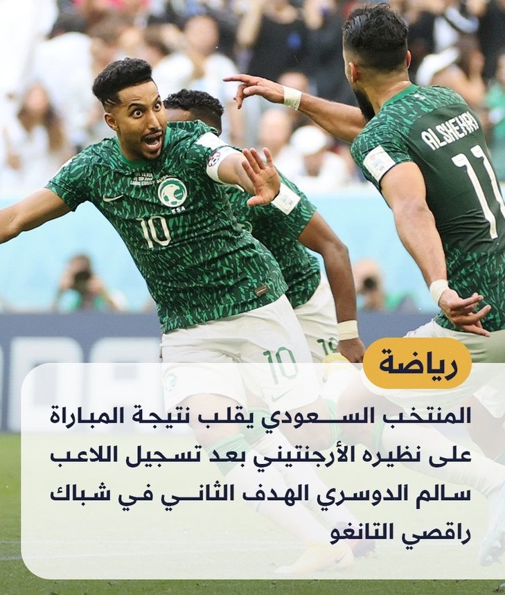 أخبار الرياضة > المنتخب السعودي يسجل الهدف الثاني في شباك #الأرجنتين بأقدام #سالم_الدوسري