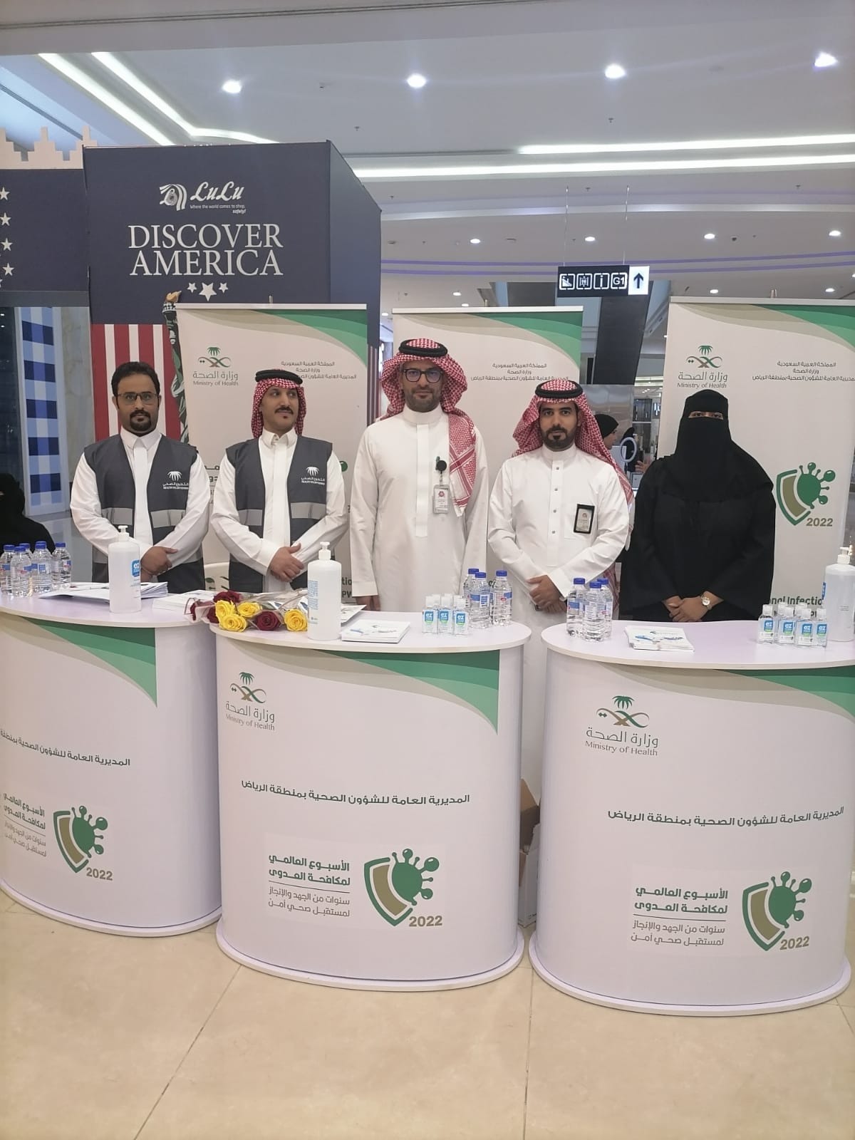 أطلقت المديرية العامة للشؤون الصحية بمنطقة الرياض ممثلة في ادارة مكافحة عدوى المنشآت الصحية الحملة التطوعية للأسبوع العالمي لمكافحة العدوى تحت شعار ” سنوات من الجهد والانجاز لمستقبل صحي آمن”
