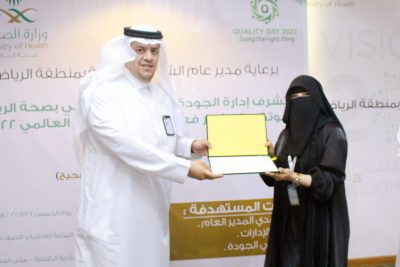 تحت رعاية مدير عام الشؤون الصحية بمنطقة الرياض الدكتور حسن بن علي الشهراني نظمت “صحة الرياض” ممثلة في إدارة الجودة والتميز المؤسسي مؤخرا فعاليات يوم الجودة العالمي 2022 تحت شعار ” ضمير الجودة.. القيام بالعمل الصحيح”