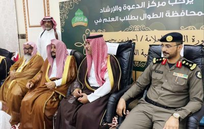 بحضور سعادة محافظ الطوال الاستاذ ناصر بن عبد العزيز بن رازن وفضيلة مدير عام فرع وزارة الشؤون الإسلامية في جازان الشيخ أسامة بن زيد مدخلي و مدير شرطة المحافظة العقيد طاهر بن علي صميلي