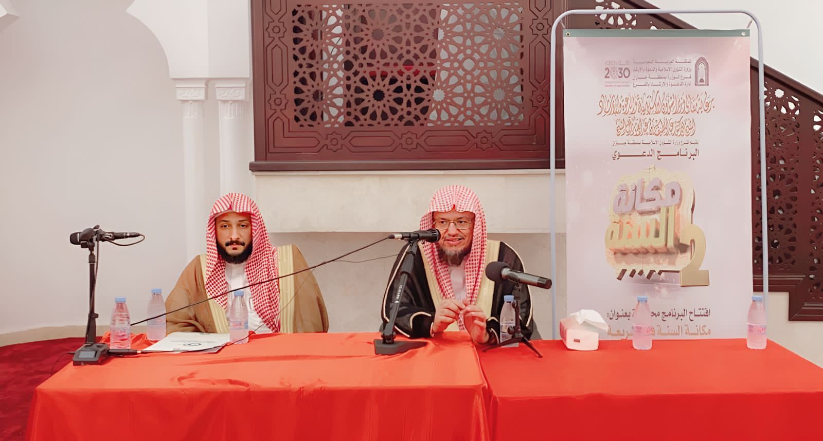 افتتح فضيلة الشيخ الدكتور علي بن يحيى الحدادي الاستاذ المساعد في كلية أصول الدين وقسم السنة وعلومها بجامعة الإمام محمد بن سعود الإسلامية وعميد معهد دراسات الإعجاز العلمي في الكتاب والسنة مساء أمس الجمعة الثامن من شهر جماد الأول ١٤٤٤ هجرية البرنامج الدعوي مكانة السنة ٢ والذي ينظمه فرع وزارة الشؤون الإسلامية والدعوة والإرشاد في منطقة جازان ويأتي برعاية معالي الوزير الشيخ الدكتور عبد اللطيف بن عبد العزيز آل الشيخ والمقام في جامع الشيخ العلامة يحيى بن أحمد عاكش بمحافظة ضمد حيث تحدث الدكتور الحدادي في محاضرة الافتتاح عن مكانة السنة في الشريعة وبين أهميتها في اثبات المسائل الشرعية وذكر أنه يجب على المسلم أن يجعل الكتاب والسنة دستوراً يسير عليه ليصل الى بر الأمان وأضاف إن العودة الى الكتاب والسنة والحكم بما حكما به والتوقف عما نهى عنه يعد الطريق الى النجاة من زيغ أهل الفساد والبدع كيف لا وأن المملكة العربية السعودية جعلت دستورها ونبراسها الكتاب والسنة تحكم بحكمه وتقف عند حدوده وهذا من فضل الله تعالى أن قيض لنا حكاماً ملتزمون بشرع الله .