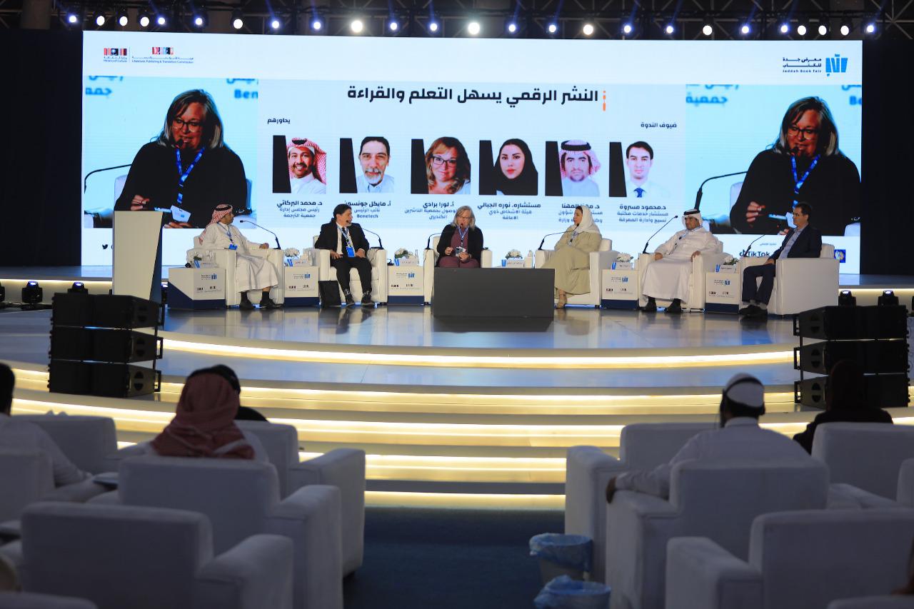 وفي جلسةٍ بعنوان “النشر الرقمي يسهل التعلم والقراءة”، أدارها رئيس مجلس إدارة جمعية الترجمة الدكتور محمد البركاتي، بمشاركة الدكتور مايكل جونسون نائب رئيس “بنتش”، ولورا برادي مدير الوسائط المتعددة في House of Anansi Press، ونورة الجبالي مستشارة هيئة الأشخاص ذوي الإعاقة، والدكتور مهنا المهنا مستشار في شؤون وكلاء الجامعة الجامعة بوزارة التعليم، والدكتور محمود مسرورة مستشار خدمات مكتبة نسيج وإدارة المعرفة. حيث أكد المتحدثين أهمية دور النشر الرقمي والقنوات الرقمية في وصول الكتب لجميع فئات المجتمع على اختلاف تطلعاتهم وثقافاتهم وميولهم، وخصوصًا فئة الأشخاص ذوي الإعاقة وكيفية خدمته لهم، في العصر الذي تتسارع فيه صناعة المحتوى وتقنية المعلومات.