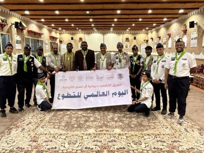 نفذ مجموعة من قادة وجوالة الفريق الكشفي بديوانية ال حسين التاريخية مجموعة من الفعاليات المجتمعية والمبادرات التطوعية بمقر الديوانية بالعاصمة الرياض وفي وادي حنيفة بمناسبة اليوم العالمي للعمل التطوعي ٢٠٢٢م وتضمنت الفعاليات ندوة حوارية قدمها مشرف الجوالة القائد الكشفي محمد بلال كما تضمنت الفعاليات تنظيف مسجد ال حسين التاريخي وترتيب المصاحب كما تم غرس مجموعة من الشتلات وتنظيف عسف النخيل وتقليم الأشجار كما تم توزيع غطاء الراس لعمال الطرق وشارك مع الفريق الكشفي قادة السودان مصعب محمود واحمد عبدالهادي ووعد الحق امين