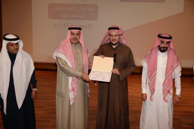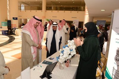 كذلك أبدى معاليه سعادته بما شاهده في المعرض الخاص بالفعالية مشيدًا بتعدد الجمعيات والجهات المشاركة الخاصة والحكومية والوقفية والتي قدمت جهودًا متميزة للأشخاص ذوي الإعاقة، كما كرم معالي رئيس الجامعة المشاركين في الفعالية من الجهات الخارجية وعمادة شؤون الطلاب.