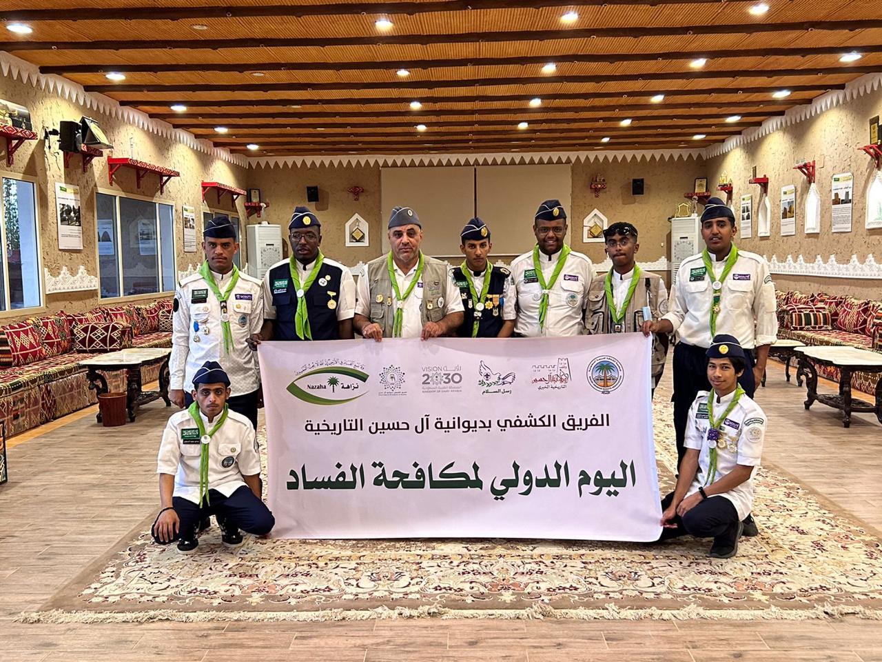 ساهم أعضاء الفريق الكشفي بديوانية ال حسين التاريخية بالرياض في تفعيل مجموعة من البرامج التوعوية والمبادرات التطوعية بمناسبة اليوم الدولي لمكافحة الفساد ٢٠٢٢م حيث بدأت الفعاليات بجلسة حوارية للقادة