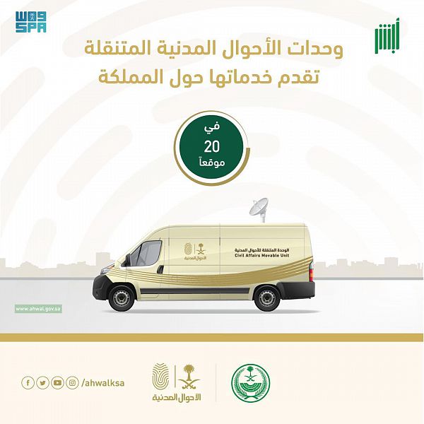وحدات الأحوال المدنية المتنقلة تقدم خدماتها في (20) موقعًا حول المملكة