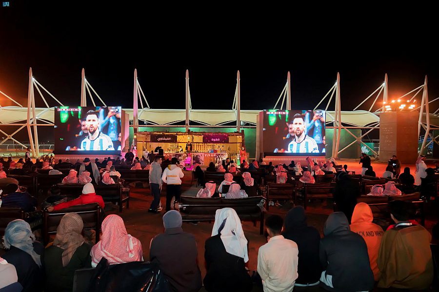 احتضن مهرجان الملك عبدالعزيز للإبل أكثر من 5 آلاف مشجع لكرة القدم، حرصوا على مشاهدة المباراة النهائية لكأس العالم، وسط أجواء تراثية حفّها الحماس الكبير.