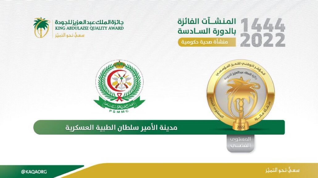 حصلت مدينة الأمير سلطان الطبية العسكرية على المستوى الفضي عن فئة المنشئآت الصحية الحكومية لجائزة الملك عبدالعزيز للجودة والتميز المؤسسي في دورتها السادسة.