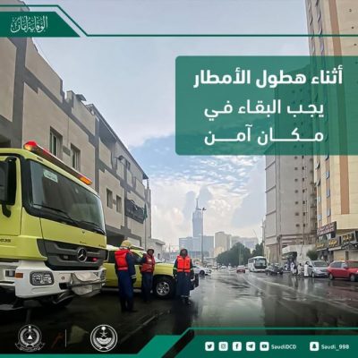 الدفاع المدني يدعو إلى أخذ الحيطة لاحتمالية استمرار هطول أمطار رعدية على معظم مناطق المملكة ..