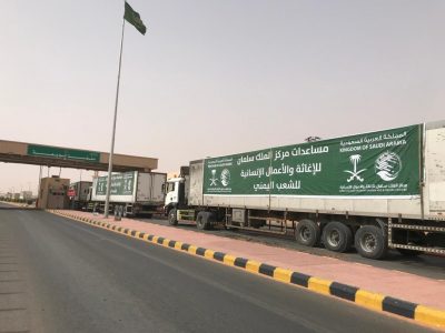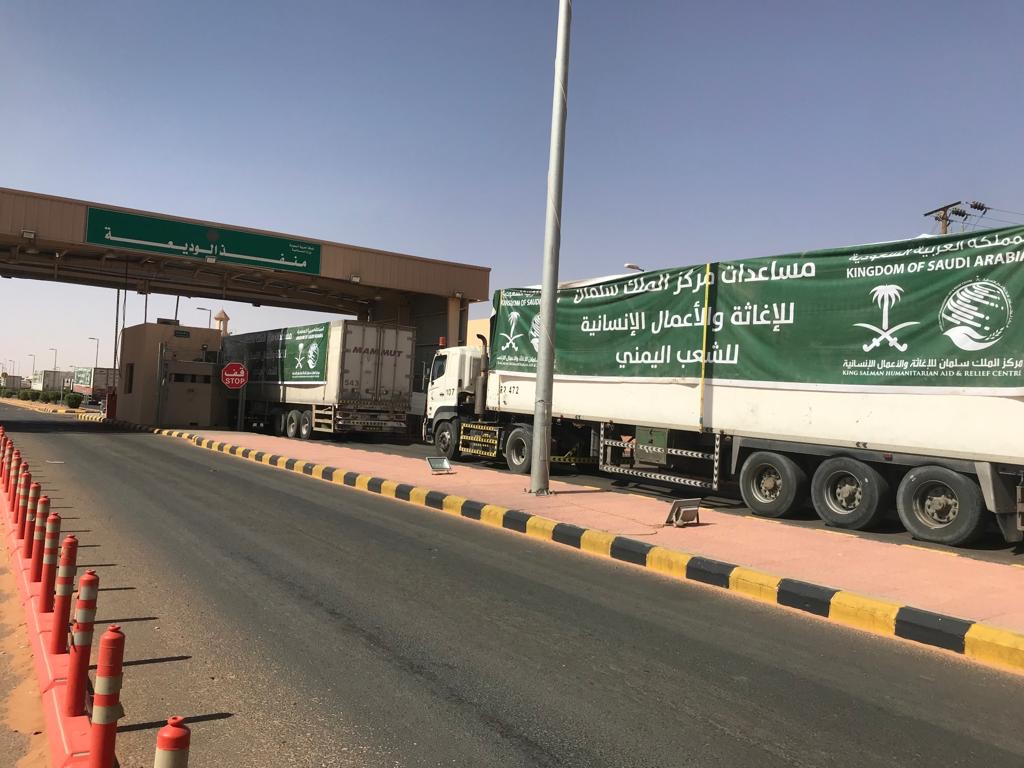 عبور 4 شاحنات منفذ الوديعة تحمل مستلزمات الغسيل الكلوي مقدمة من مركز الملك سلمان للإغاثة لتوزيعها في عدة محافظات يمنية