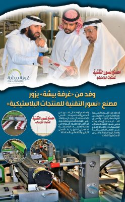 زار وفد من الغرفة التجارية بمحافظة بيشة يضم رئيس الغرفة صالح الوتيد والأمين العام «محمد آل مشوط» مصنع «نسور التقنية للمنتجات البلاستيكية»، وذلك للاطلاع على المصانع القائمة والمشاريع الجديدة والفرص الاستثمارية المتاحة.