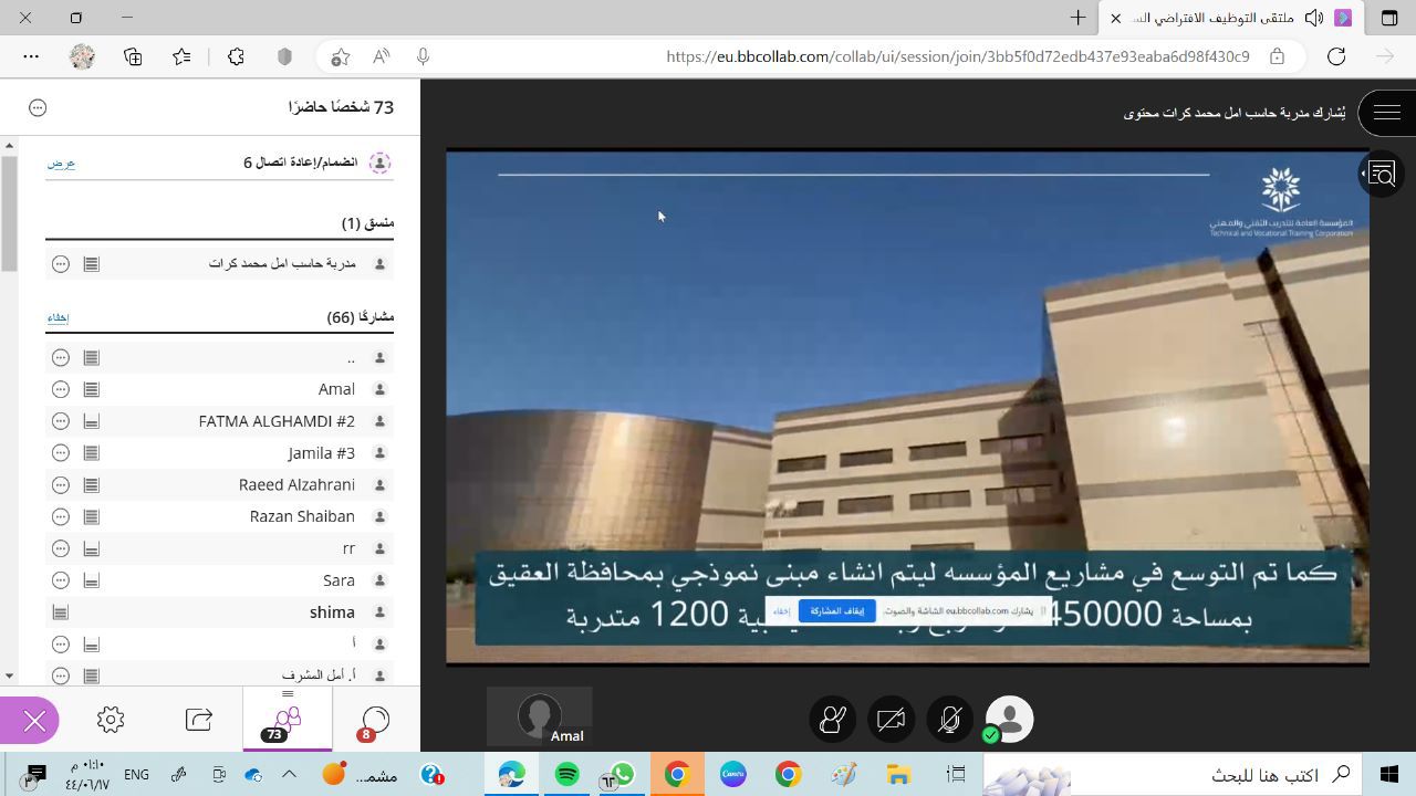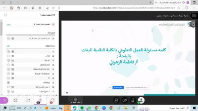 كما القت مساعد مدير عام الإدارة العامة للتدريب التقني والمهني كلمة ترحيبية بالجميع أكدت على تسجيل الخريجين بالمنصة الوطنية الموحدة ” جدارات ” كما تم عرض برومو للكلية موضح فيه الطاقه الاستيعابية والاقسام .