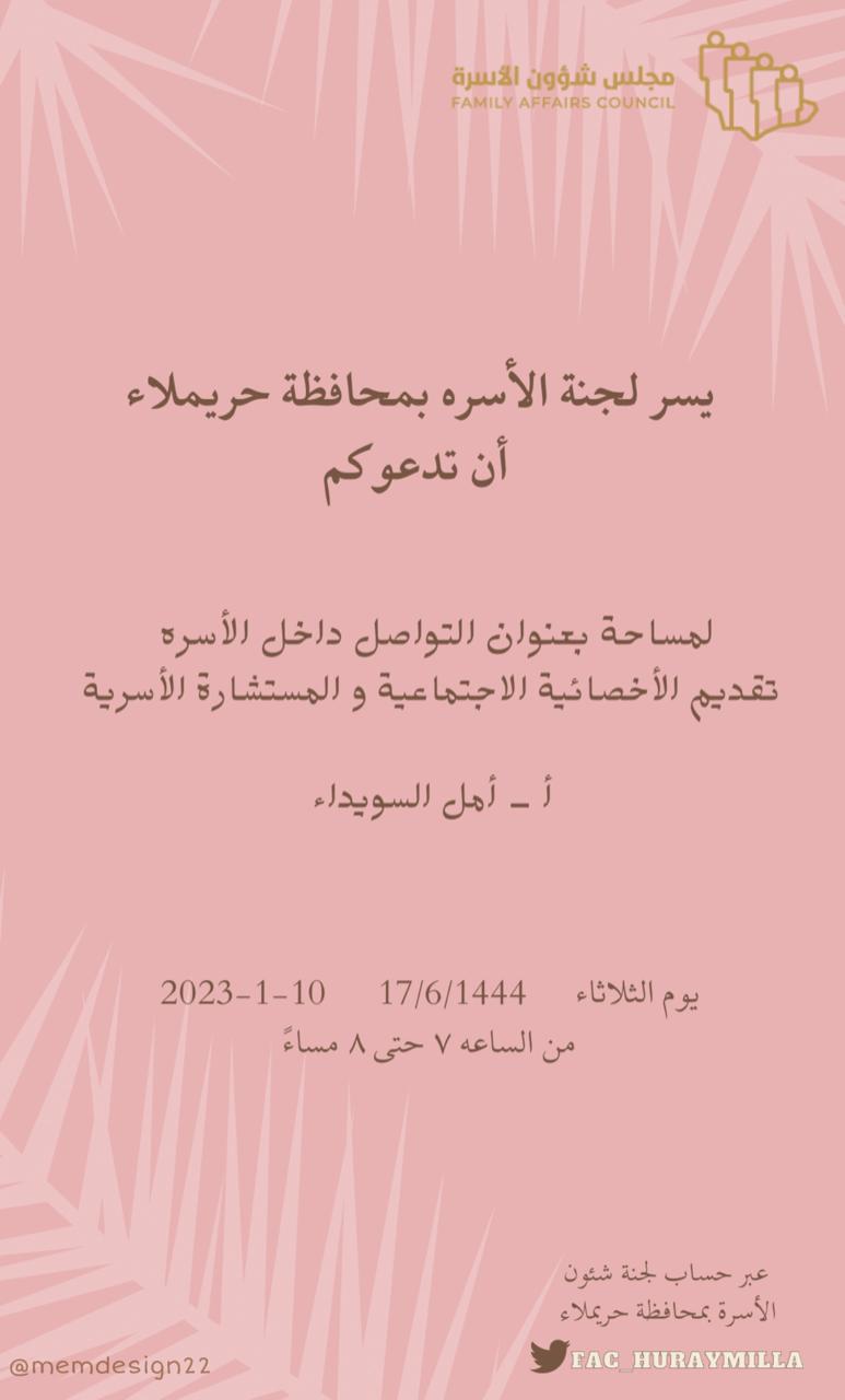 التواصل داخل الأسرة لقاء في لجنة شؤون الأسرة بحريملاء