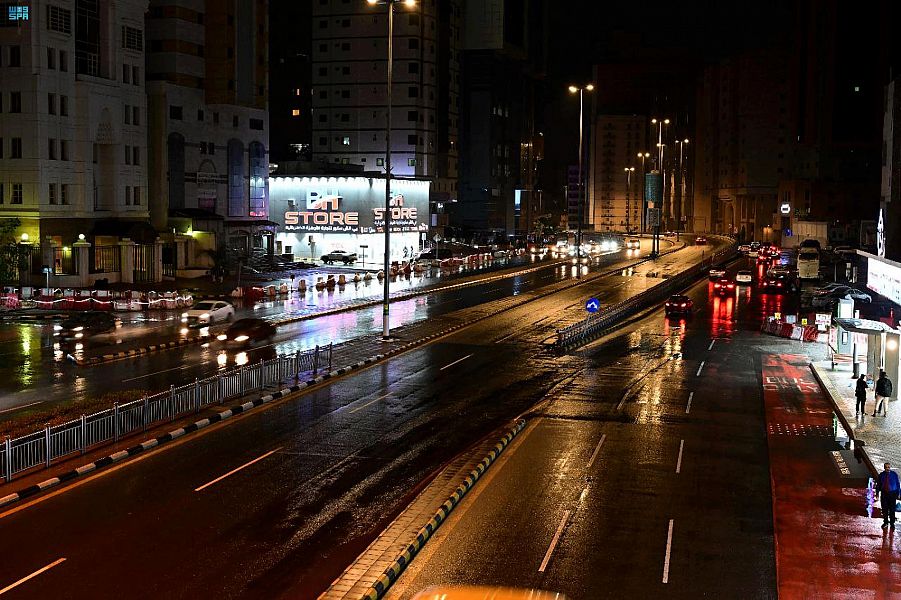 هطلت اليوم، أمطار متوسطة إلى غزيرة على أنحاء متفرقة من أحياء مكة المكرمة.