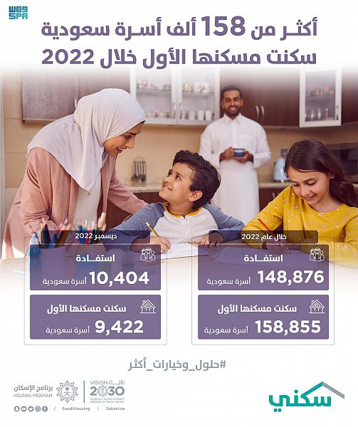 أخبار محلية > “سكني”: أكثر من 158 ألف أسرة سعودية سكنت مسكنها الأول في عام 2022