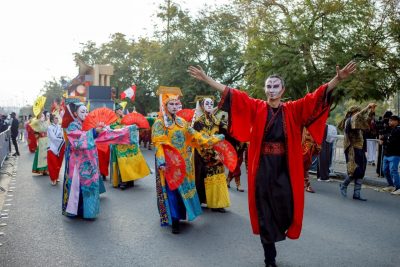 وشهد المهرجان تنظيم مسيرة كرنفالية في شارع الفن بأبها، على عربات تم تصميمها لتحاكي الجانب الثقافي والفلكلوري للدول المشاركة، إضافة إلى الأزياء التراثية والشعبية التي تمتاز بها الدول المشاركة لتضيف تنوعاً ثرياً في المهرجان الذي تشارك فيه 16 فرقة سعودية و 14 فرقة دولية تقدم حوالي 32 لوناً ادائياً جبلياً من داخل المملكة وعدد من دول العالم.