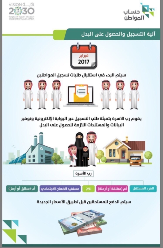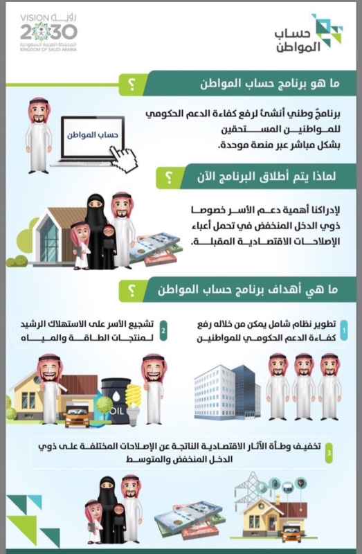 وسيتم إنشاء حساب لكل مواطن تحت اسم حساب المواطن. عبر إيداع مبلغ ماليّ كل شهر في حساب المواطن، بهدف وصول الدعم لمن يستحقه. كما سيتم تسجيل المواطنين بالحساب الموحد ابتداءً من مطلع فبراير المقبل.