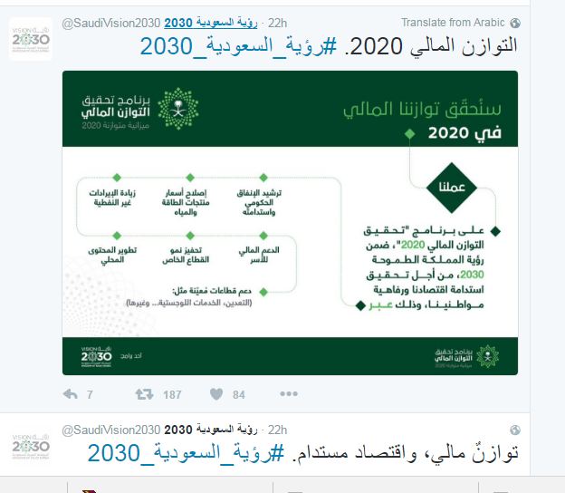 تحوَّل موقع رؤية السعودية، وحسابها على “تويتر” إلى منصّة للباحثين عن المعلومات حول الميزانية السعودية، وخطة التوازن المالي، وبرنامج حساب المواطن، وغيرها من المعلومات الاقتصادية الهامة.